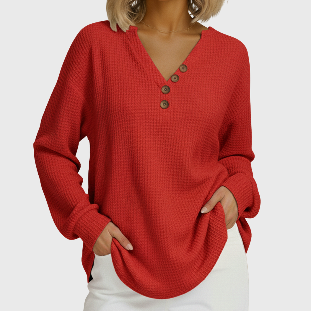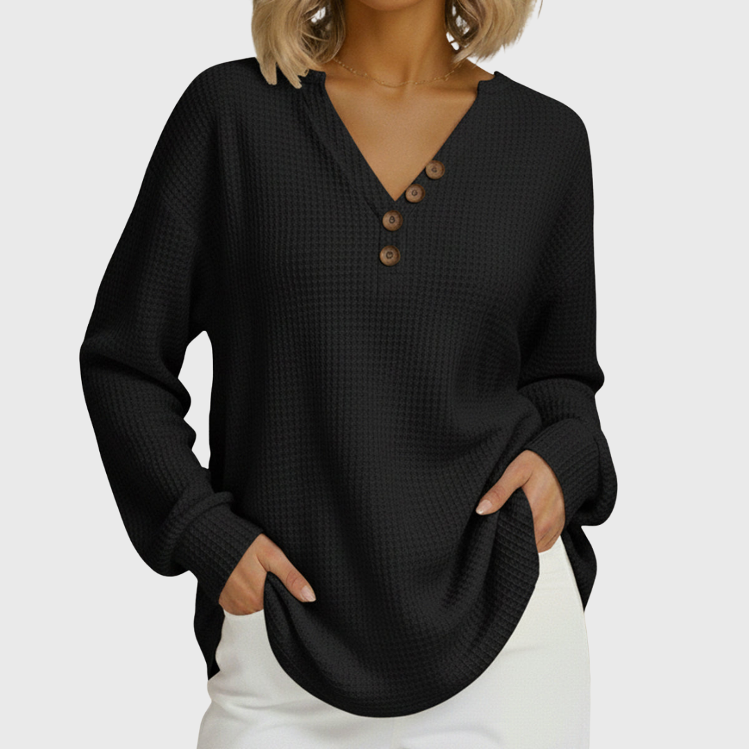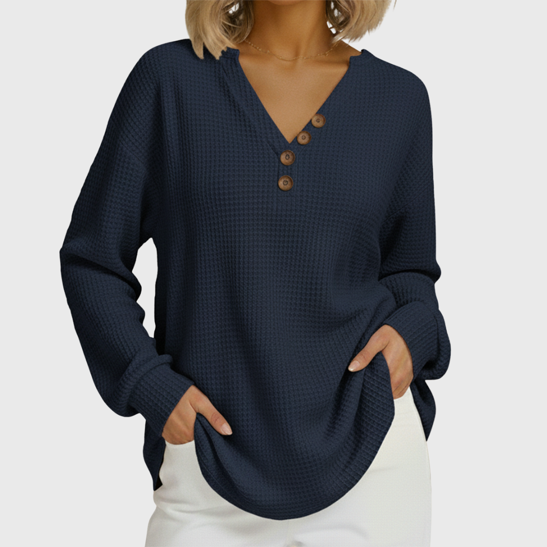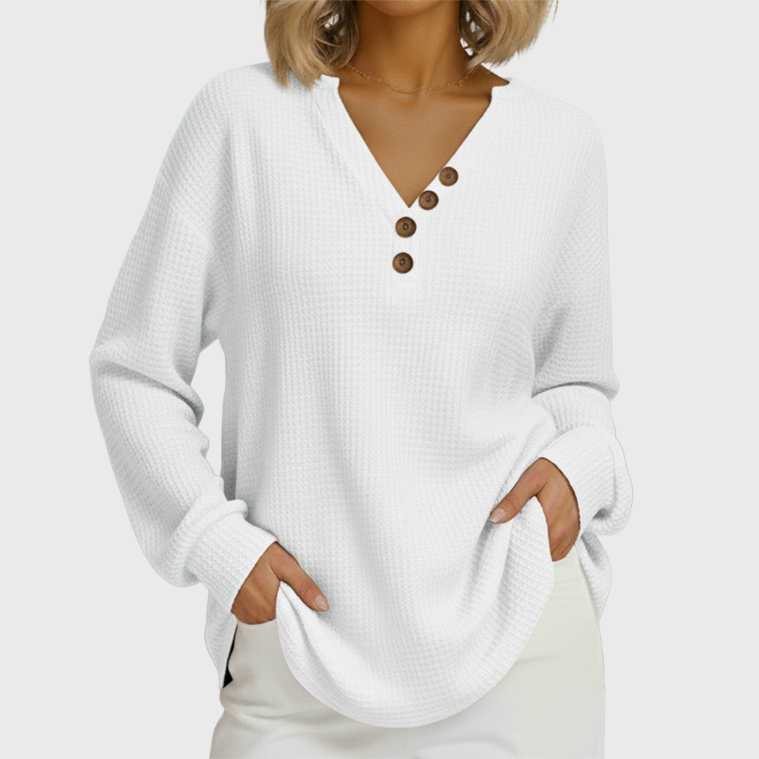 Останете приятно топли, дори когато температурата падне до 5°C, с нашия луксозен дамски пуловер – изработен от плътен, двоен вълнен плат, който осигурява изключително меко и уютно усещане. Вътрешността е допълнително топла и се усеща като флийс върху кожата, така че можете да се насладите на върховен комфорт в хладни дни.