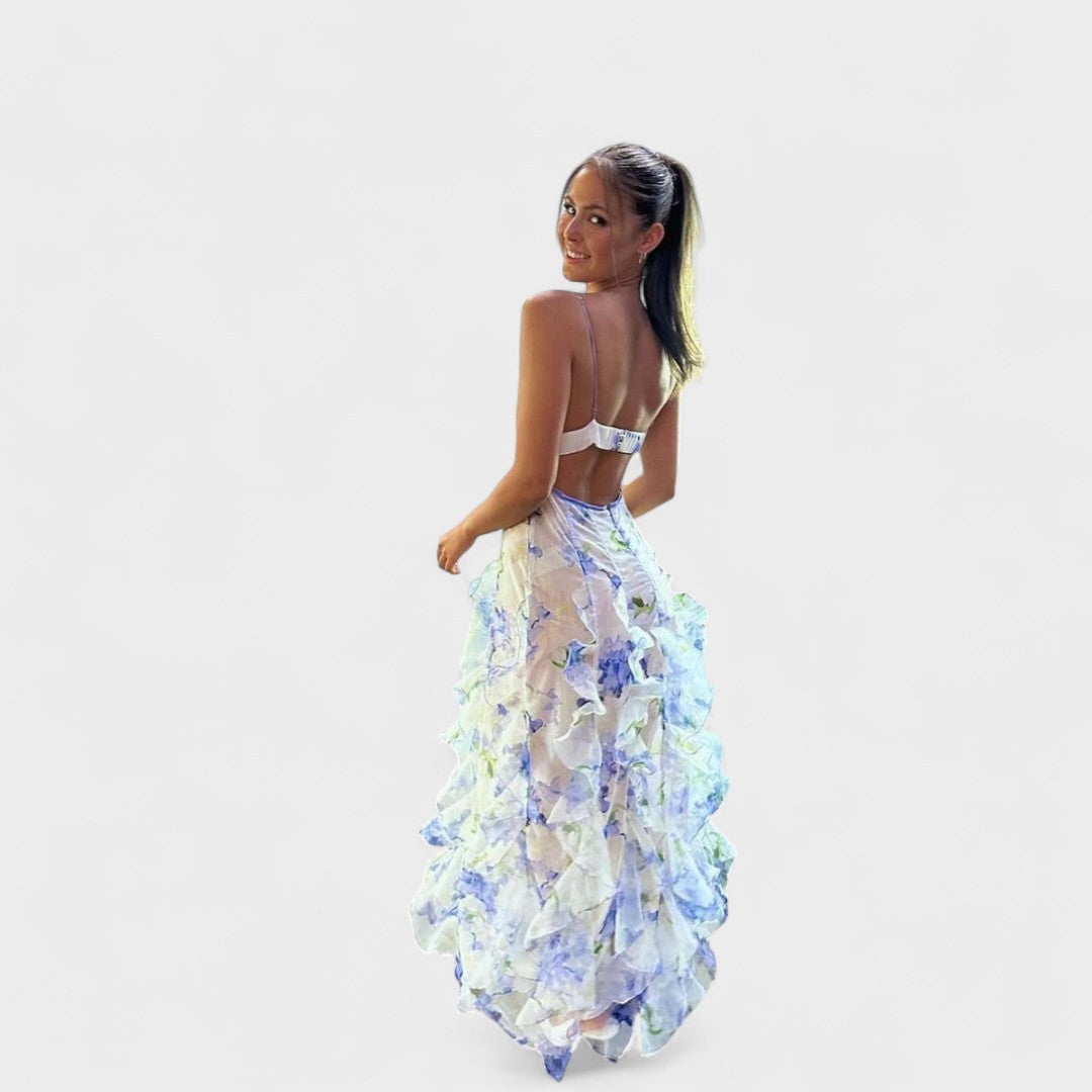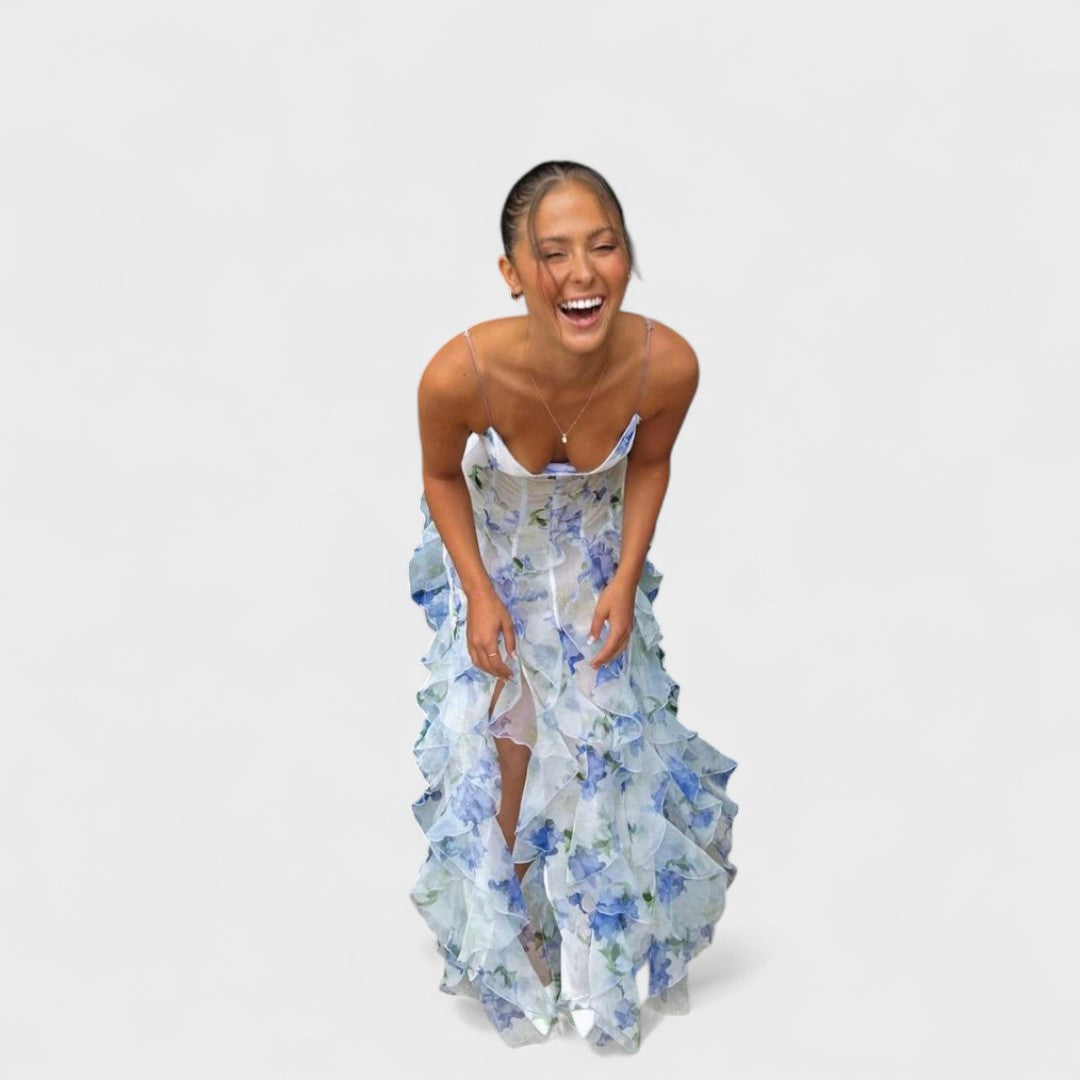 Миряна - Дълга цветна рокля с волани