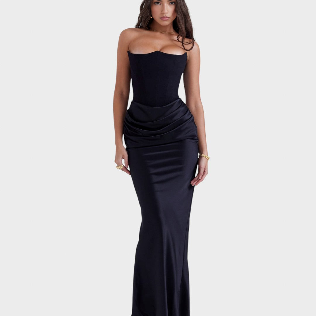 Класическа дълга рокля с чисти линии излъчва простота и вечна красота. Перфектна е за жени, които вярват, че по-малкото е повече.