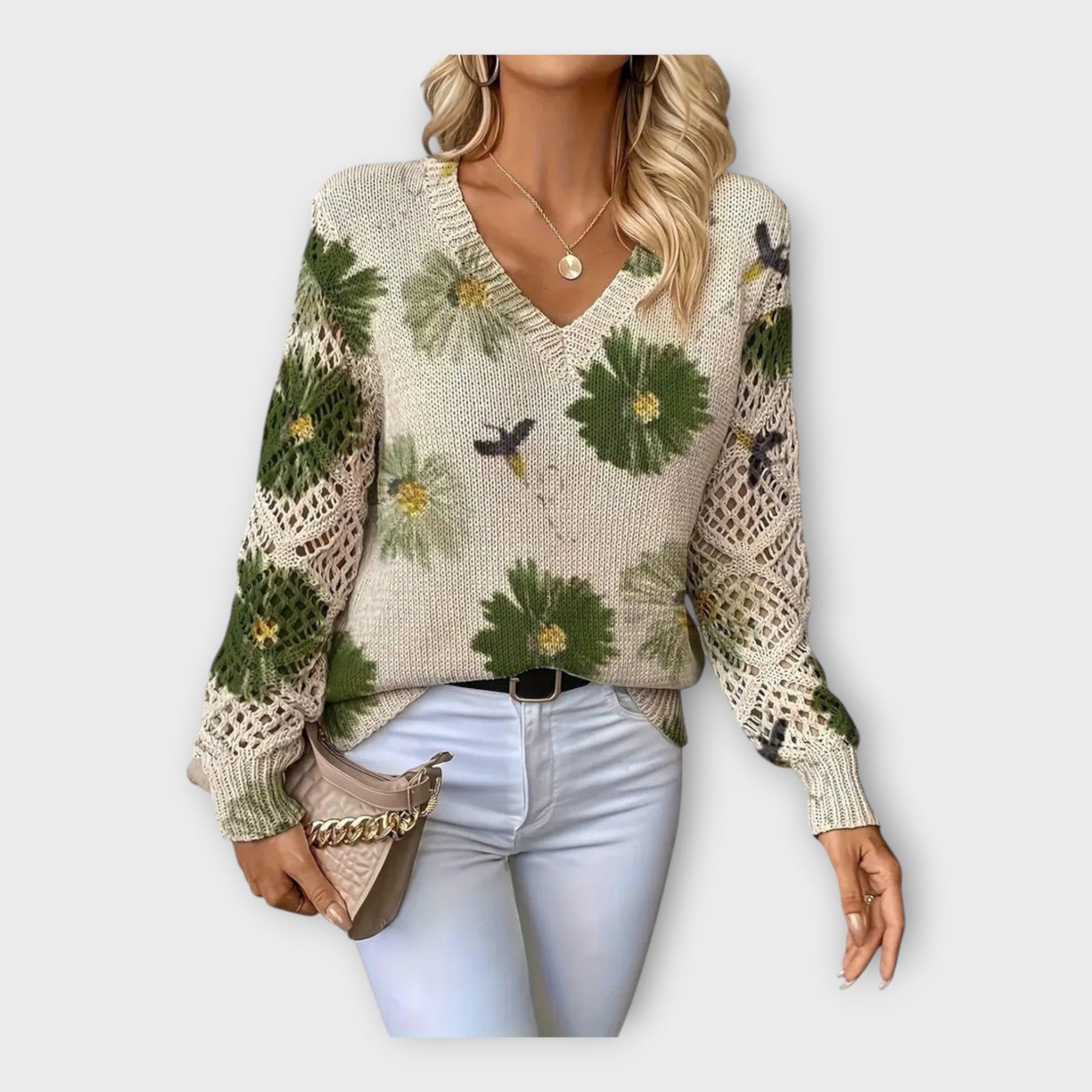 Пуловер, който комбинира женственост и елегантност, предоставяйки перфектния завършващ щрих на всяка комбинация. Неговият универсален дизайн го прави идеален за всякакви поводи, от неформални до по-елегантни. С мека текстура и вечен характер, той представлява основен елемент, който не трябва да липсва в колекцията ви.