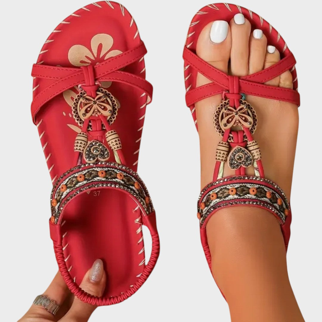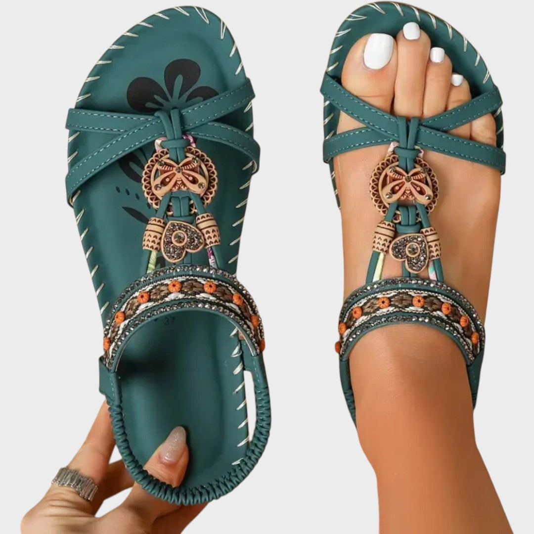 Тези ортопедични сандали перфектно съчетават комфорт и стил. Те са проектирани с ергономична подметка, която осигурява опора на стъпалото и улеснява целодневното ходене. Декоративните детайли добавят щрих на sophistication, докато гъвкавата изработка позволява естествено движение. Идеални са за ежедневна употреба, както и за специални поводи, когато искате да изглеждате модерно, а в същото време да се наслаждавате на комфорта.