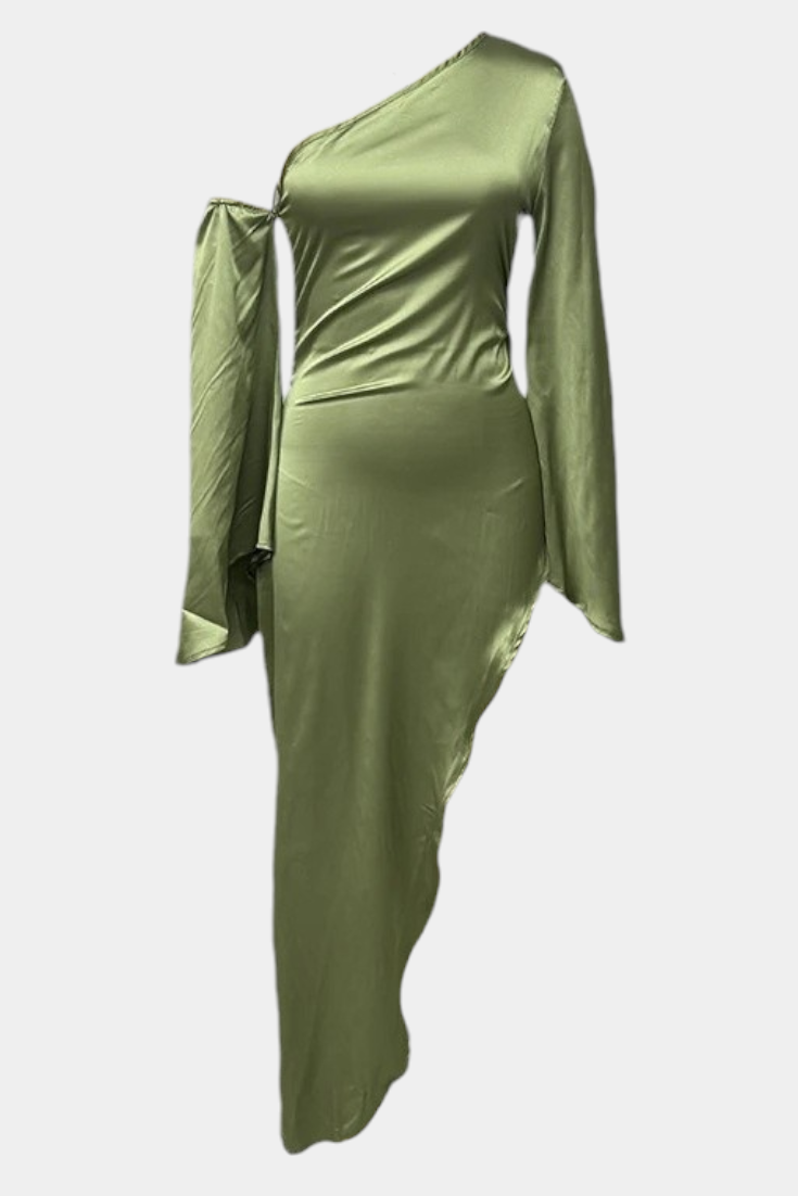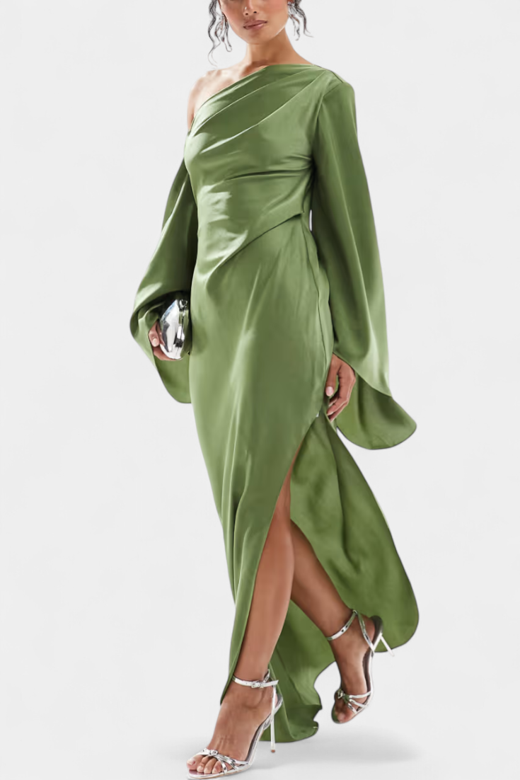 Франка Асиметрична Макси Рокля с Едно Рамо и Оформен Талия