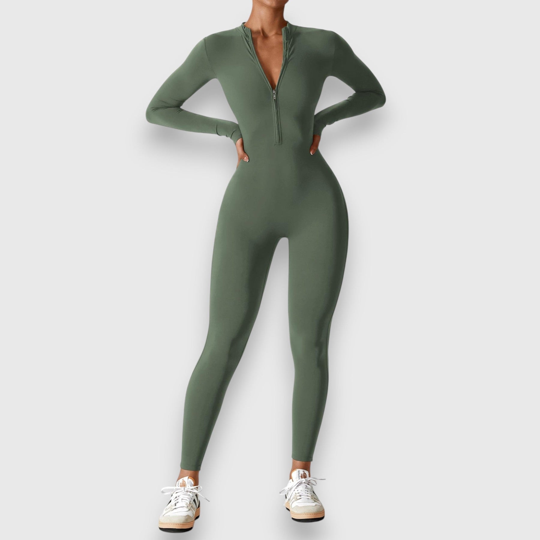 Цялостната комбинация Elijana съчетава елегантност и комфорт в модерен дизайн. С висок яка и практичен цип, тя прави модерно изявление и е идеална за всякакви поводи.